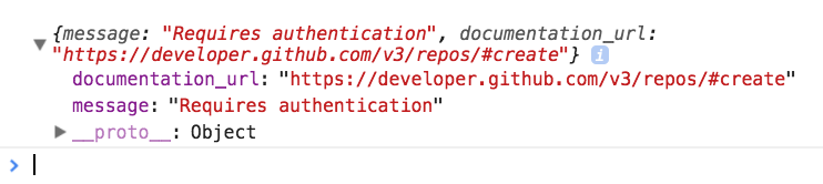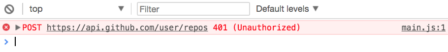 Try sending a POST request to create a Github repository. If you don’t provide any authentication, you’ll get an error from the Github. It says 401 Unauthorized.